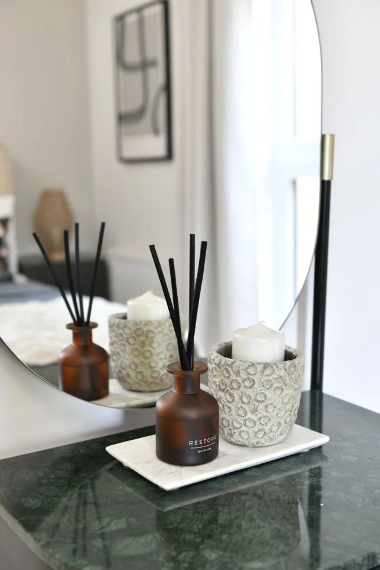 1 Bedroom apartment in Croydon. We wanted to add lots of texture into this apartment whilst keeping the colour pallet neutral with pops of colour running throughout. The target audience was first time buyers and young professionals.